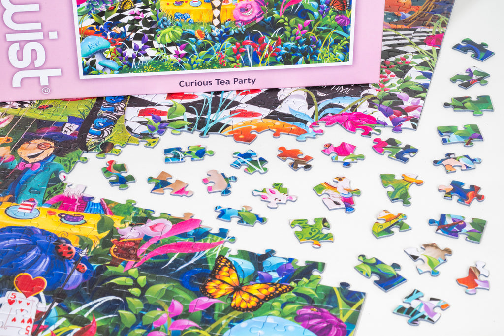 Julie Borden’s signature flair for color and dynamic design comes to life in Curious Tea Party, a vibrant take on the beloved scene. Famous for her hand-painted musical instruments and bold compositions, Julie infuses every detail with energy and whimsy. Her vibrant reinterpretation invites puzzlers to explore this madcap moment in a whole new way.