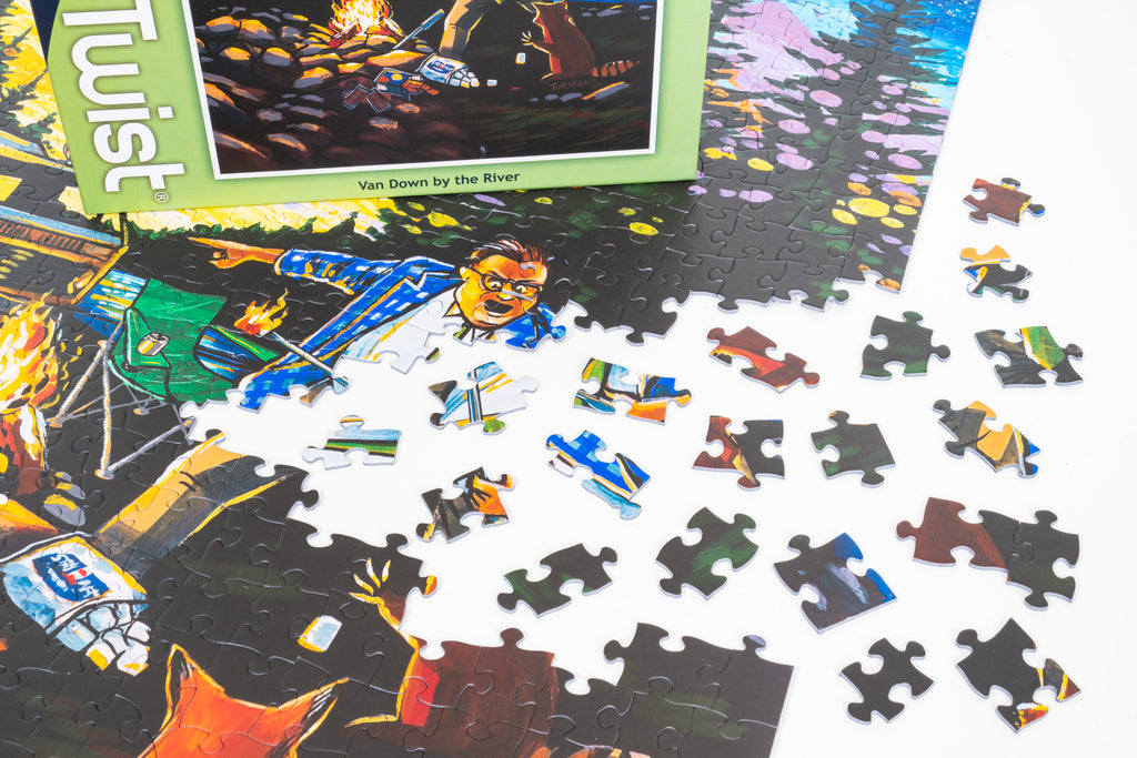 Get ready to bust a gut with this jigsaw puzzle featuring Adam Turman’s bold take on a legendary late-night character. Originally drawn for the Inktober prompt “Camp,” this wild illustration channels the chaotic charm of everyone’s favorite over-the-top motivational speaker— you know, the one who lives in a van down by the river! It’s a laugh-out-loud tribute to peak ’90s comedy.